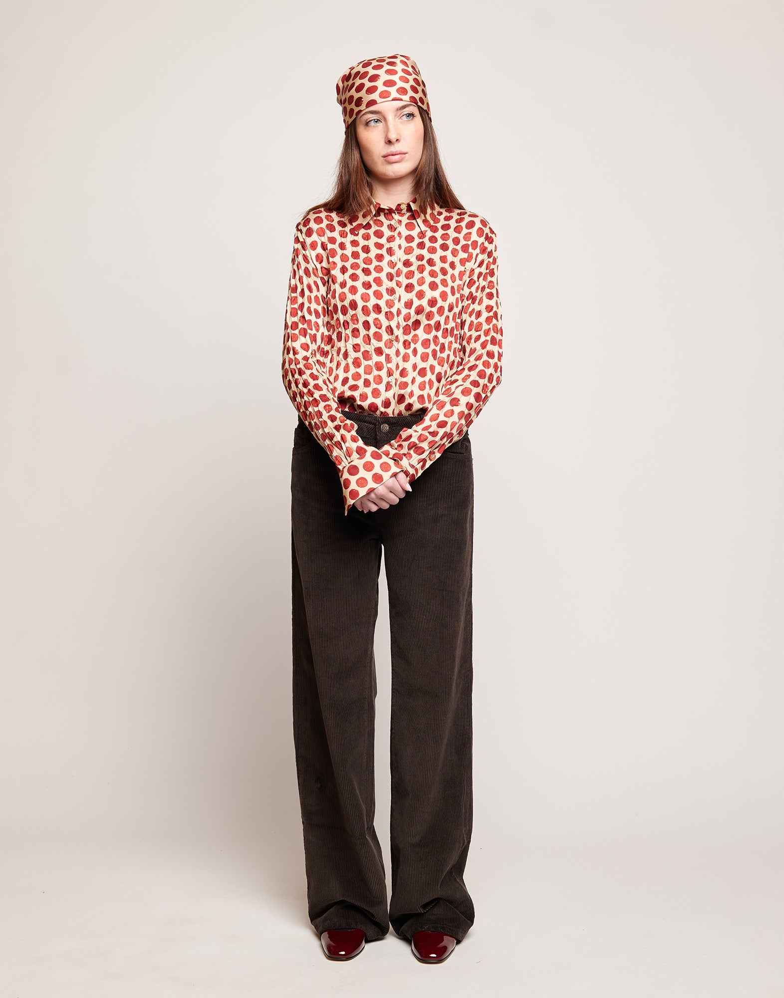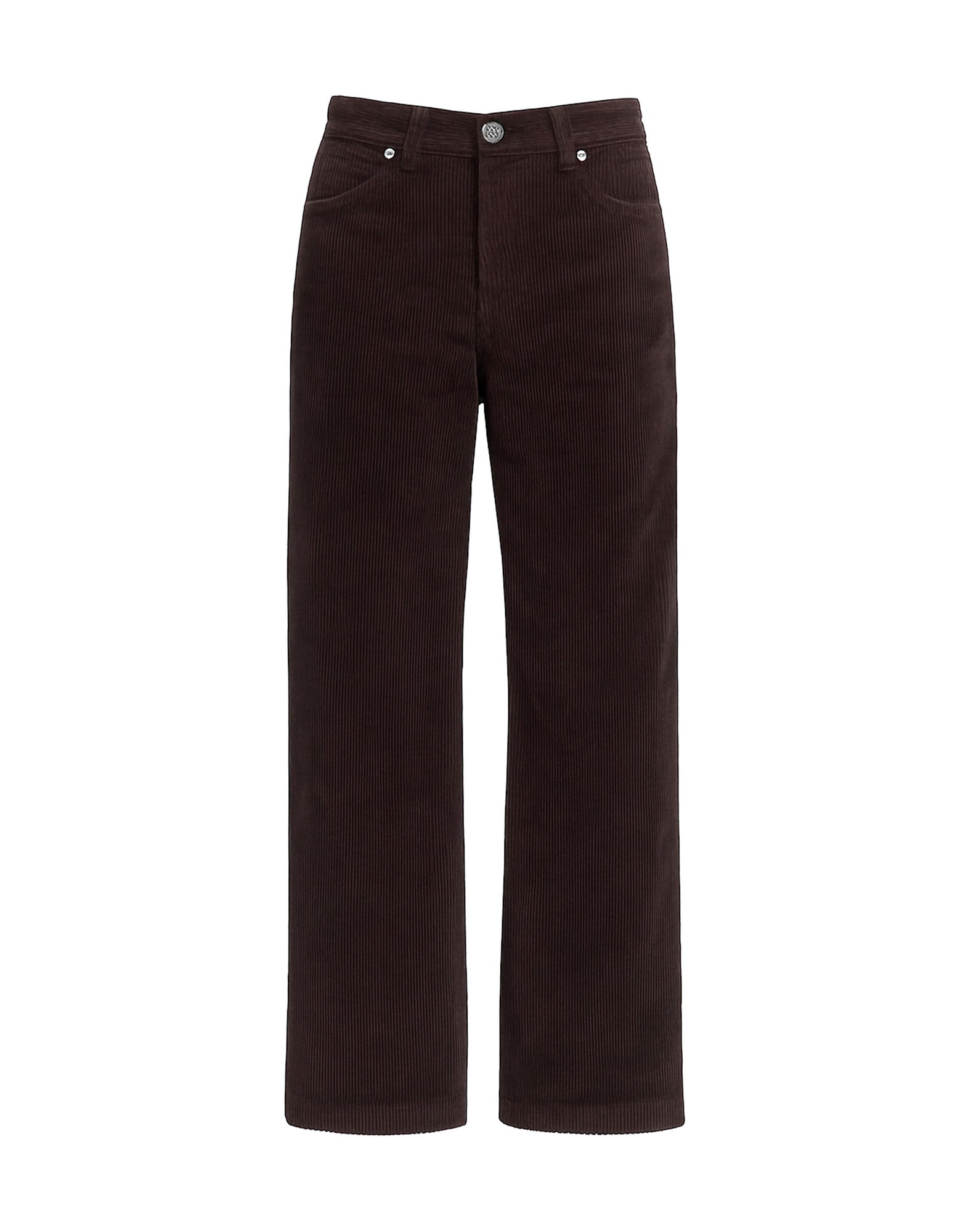 I pantaloni Rovere sono realizzati in velluto a 500 righe, un tessuto ricco e materico che dona profondità e carattere al capo. La linea palazzo e le cinque tasche classiche li rendono versatili e moderni, perfetti per look casual raffinati o abbinamenti più ricercati.